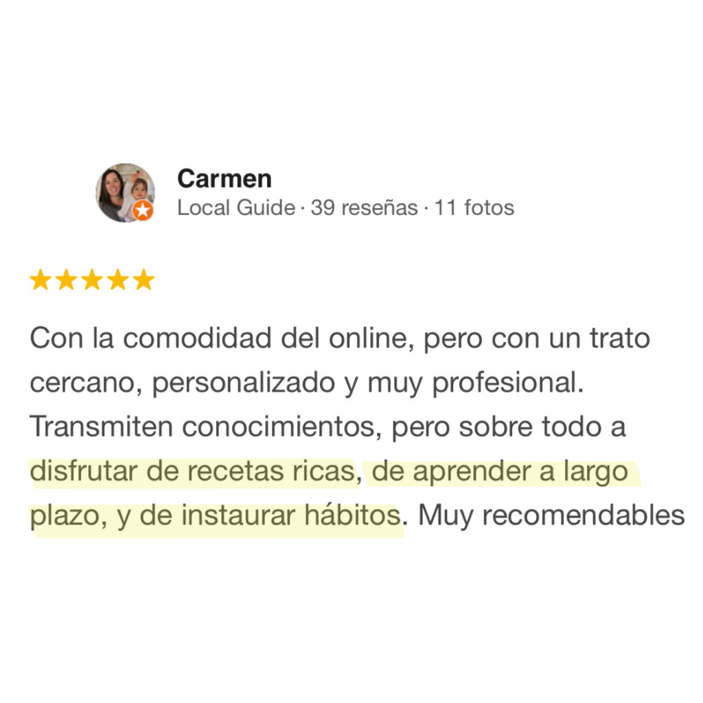 Regulas hambre y saciedad, recuperas energía y aprendes a relacionarte con la comida de una forma tranquila, flexible y sostenible en el tiempo.